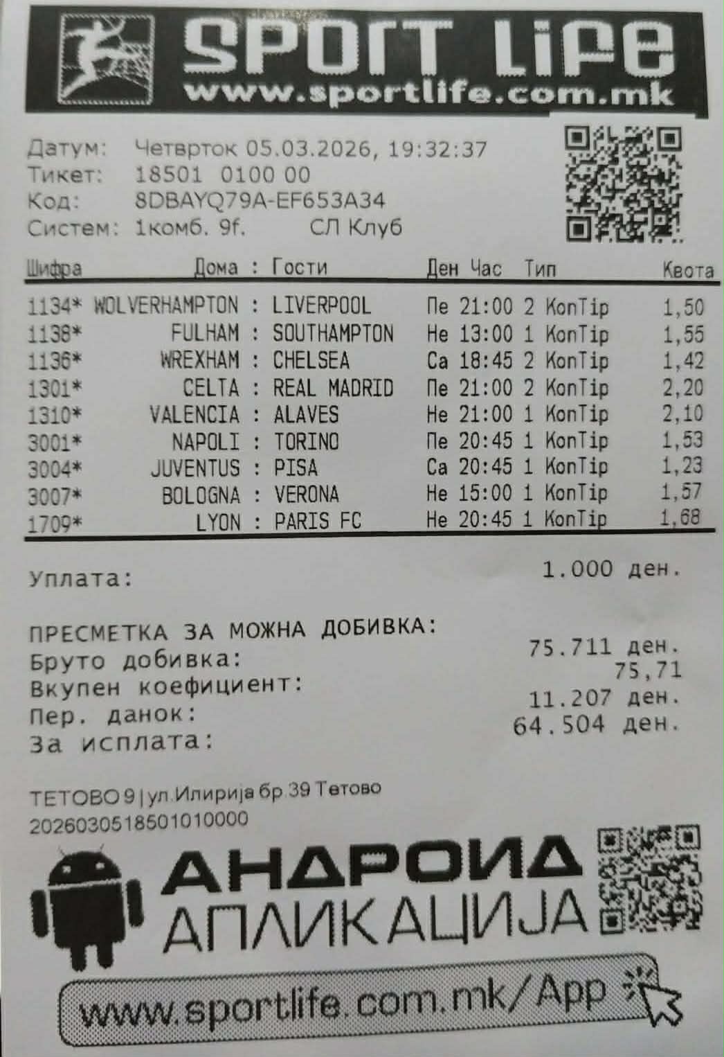 „Не премногу, ама да, следам фудбал. Сепак, потекнувам од фудбалска фамилија. Тие што долго време следат и се вистински познавачи, моето презиме ќе им каже сè. Инаку омилен клуб ми е Реал Мадрид. Порано се имам обложувано на фудбалски мечеви онака чисто за забава, најголема добивка ми била 60.000 денари, сега веќе не, но можам да кажам дека имам многу среќа во игри на среќа. Мислам дека општо имам среќна ѕвезда, за што сум многу благодарна“, ни рече Катерина, која верува дека хуманитарниот тикет ќе биде добитен и парите ќе бидат донирани на вистинско место.