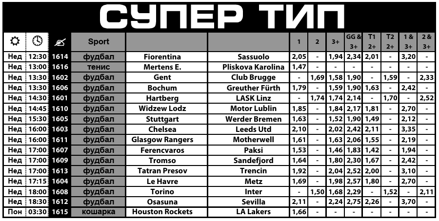 Ако сакате да најдете каде се најголемите квоти за победи на екипи фаворити како Челзи, Ренџерс, Ференцварош, Интер, Штутгарт, тогаш Супер типот на Sport Life е вистинското место.