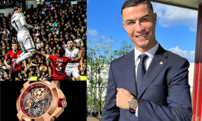 Роналдо се пофали со нов спонзор кој му изработи стилизиран часовник, но „спорен“ е еден детаљ на часовникот. Стрелките покажуваат 10.10 часот, што е на некој начин асоцијација за голот со глава кој Роналдо го даде пред девет години во дресот на Реал Мадрид против Манчестер јунајтед.