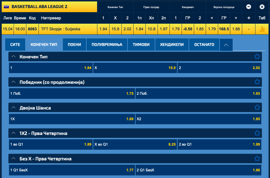 И квотите во Sport Life се на страната на нашиот претставник, па квотата за победа на ТФТ е 1.84, додека рибрејк на Сутјеска и израмнување на серијата на 1-1 има квота од 2.02.