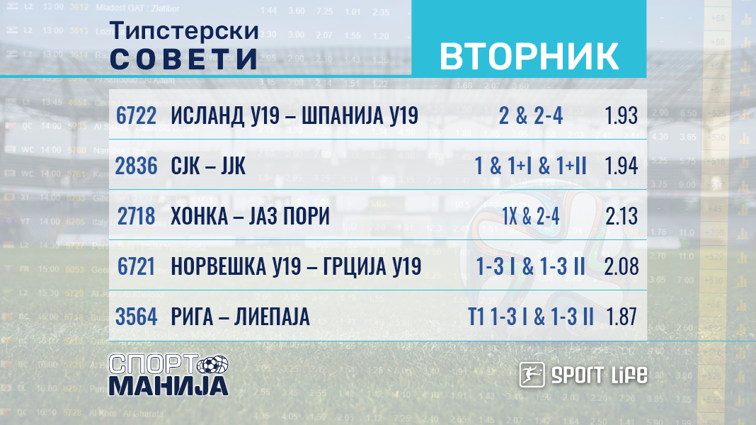 6722 Исланд У19 – Шпанија У19 (20.15 часот)