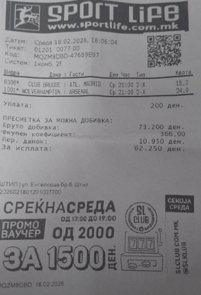 Што помалку натпревари, тоа и поголема можност да се погоди и да се оствари добивка. По оваа девиза се водеше типстерот од Штип, кој успеа да стигне до добивка од 1.000 евра со вложени само 200 денари.