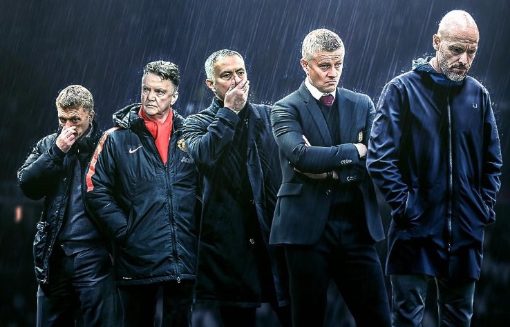 Дејвид Мојс, Луис ван Хал, Жозе Мурињо, Оле Гунар Солскјер и сега Ерик тен Хаг се тренерите коишто беа на клупата на Манчестер по заминувањето на Фергусон и никој не успеа да го одведе клубот на шампиони патеки во Премиер лигата.