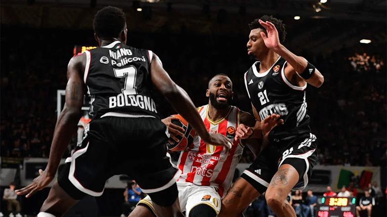 Црвена ѕвезда го совлада Виртус во Болоња со 102-93, што за Црвено-белите од Белград е трета евролигашка победа по ред и на сите овие три дуели постигнаа троцифрен број на поени.