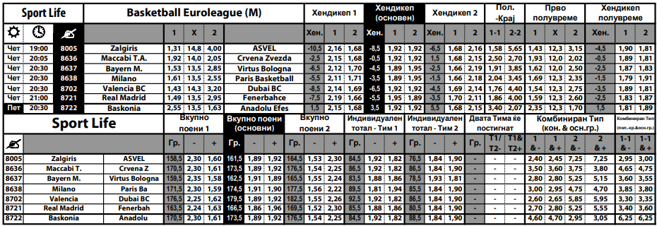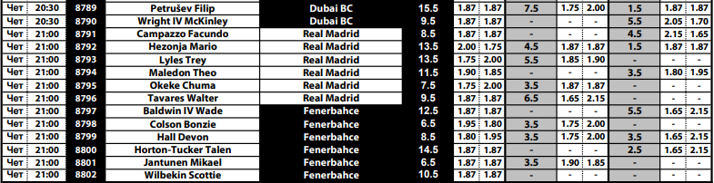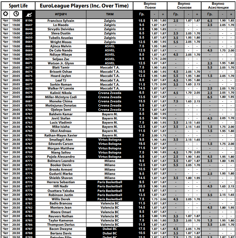 Во понудата за денешните мечеви има над 60-мина кошаркари за играта „плус-минус“ поени. Кај одреден дел од играчите има понуда и за вкупниот број скокови и асистенции.