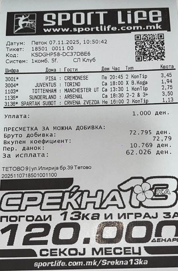 „Фудбал секако следам во слободно време, омилен тим уште од детството ми е Црвена ѕвезда. Немам некое искуство со обложување, со хуманитарниот тикет се надевам на почетничка среќа“, заклучи Јаневиќ.