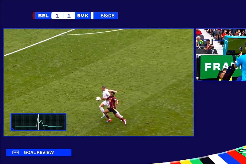 Главниот судија Умут Мелер ја гледаше ВАР-снимката, која првпат покажа еден досега непознат детаљ, кој многу потсетува на ЕКГ. Во топките кои се користат на ЕП има вградено микрочип со сензор кој детално го следи и го регистрира секој допир, а податоците се испишуваат во вид на линија.