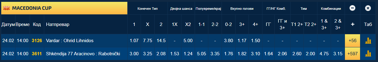 Интересно е дека Вардар никогаш не примил гол во дуелите со Охрид. Имаат одиграно вкупно девет меча, а Вардар има седум победи без да прими гол, додека двапати резултатот бил 0:0. Само еднаш во овие девет дуели имало над два погодоци. За да продолжи оваа традиција и повторно да одиграат со не повеќе од два гола, квотата е огромна и изнесува 3.80.