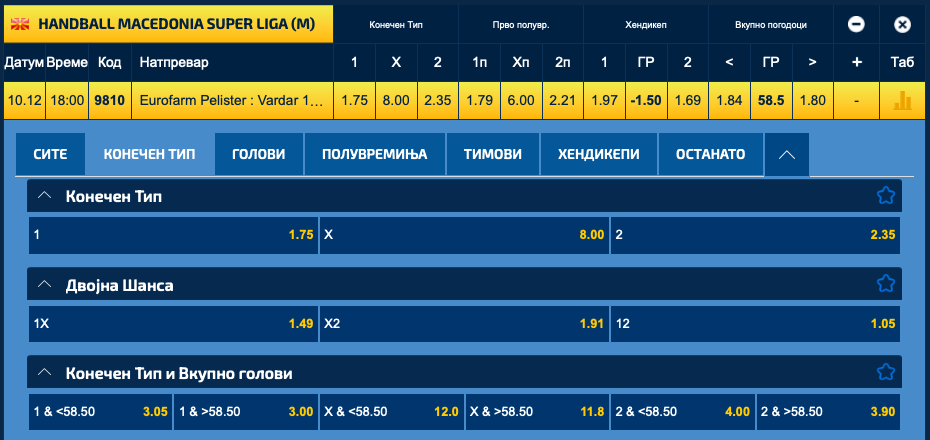 Квотите во Sport Life му даваат предност на Еурофарм Пелистер (1.75), додека квотата за победа на „црвено-црните“ е 2.35.