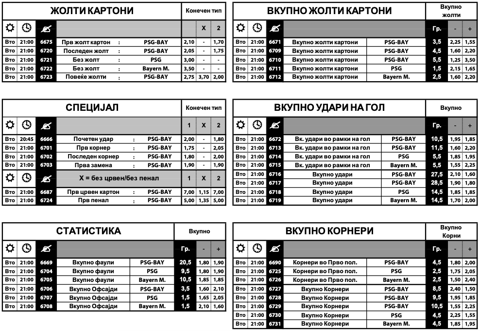 За мечот помеѓу ПСЖ и Баерн Минхен може да се одигра и на статистиката, како што се: картоните, корнерите, фаулите, офсајдите, замените, ударите во гол…