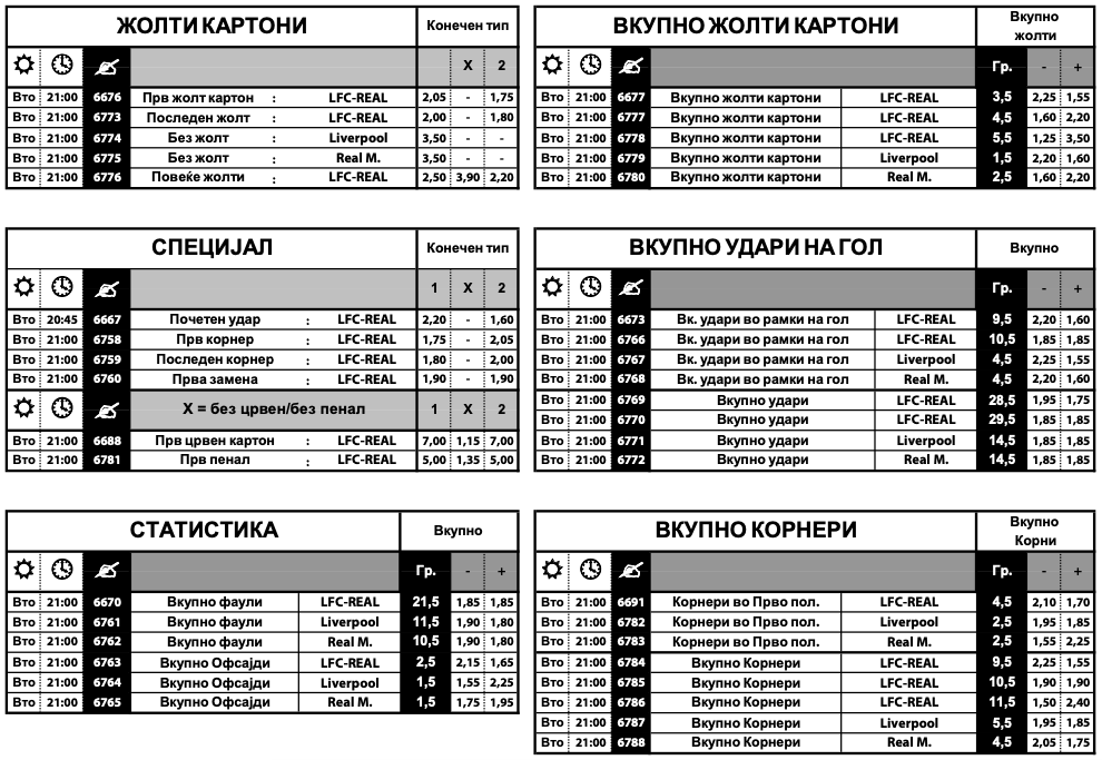 Ништо понеинтересно нема да биде и на „Енфилд роуд“ на мечот помеѓу Ливерпул и Реал Мадрид. И тука квотите се блиску, но Ливерпул е во мала предност со квота од 2.50, додека „кралевите“ имаат квота за победа од 2.60.