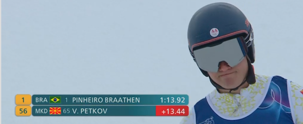 Со заостанување од 13,44 секунди зад водечкиот Лукас Братен Пињеиро кој беше фантастичен (има предност од 91 стотинка пред вториот Марко Одермат, сите други имаа 1,5 секунди и повеќе послабо време од Бразилецот), македонскиот скијач Виктор Петков е на делба на 57-мото место во конкуренција на 81 натпреварувачи во велеслалом.
