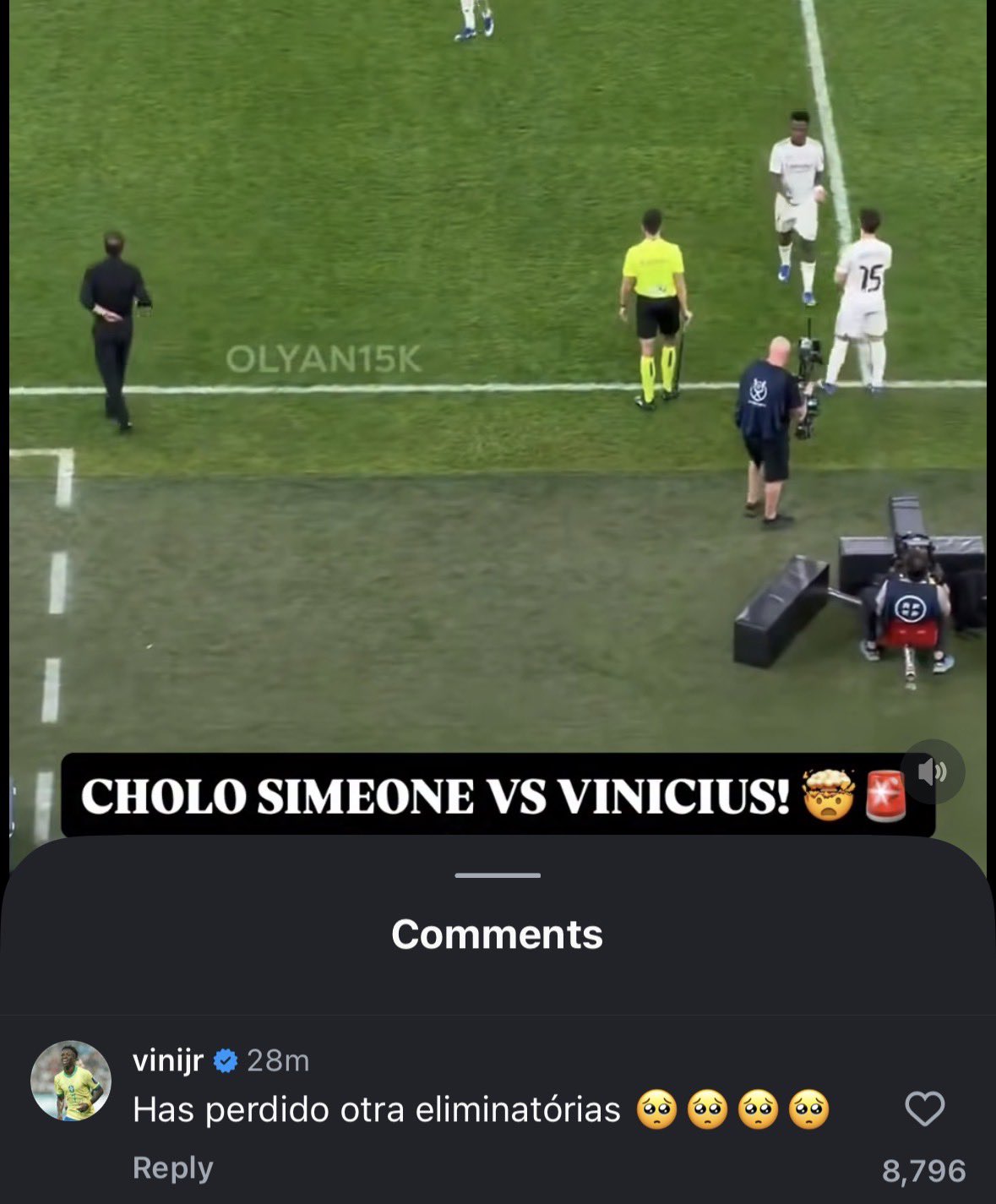 Но, и Винисиус не остана должен, па по натпреварот на социјалните мрежи напиша: „Уште еден загубен нок-аут натпревар“, порака која беше наменета токму за Диего Симеоне.