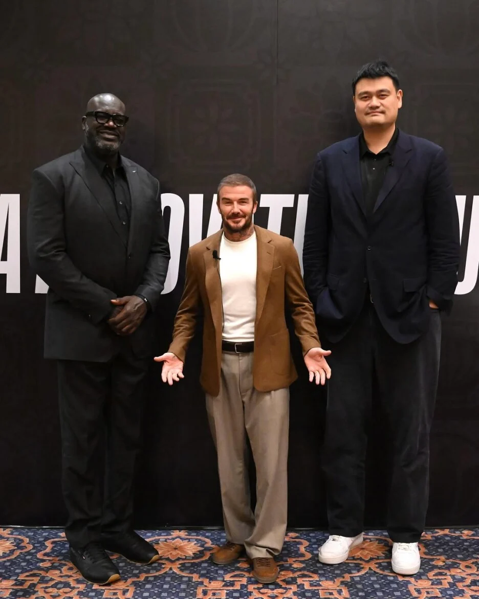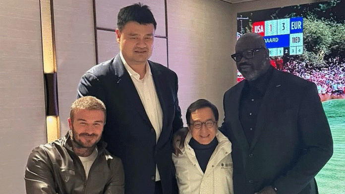 Легендарниот англиски фудбалер и еден од сопствениците на Интер Мајами, Дејвид Бекам, објави фотографија на Инстаграм на која позира со двајцата пензионирани НБА центри Јао Минг и Шекил О’Нил, а тука е и актерот Џеки Чен.