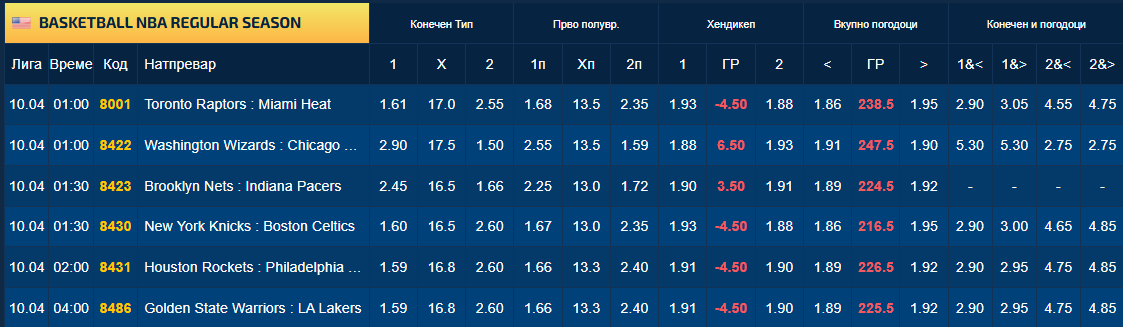 Инаку ако одиграте на победи на шесте фаворити, би имале убава можна добивка, бидејќи квотите за конечен тип не се баш мали, сите се од 1.50 нагоре. Секако тука е опцијата во Sport Life да се обложите и на број на поени на голем број кошаркари.