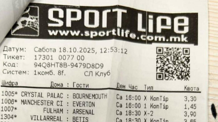 Еден оболожувач во Sport Life во скопско Марино вчера креираше перфектен тикет кој му донесе одлична добивка. На тикетот беа одиграни само осум натпревари, но дури седум од осумте квоти беа 2.95 или многу поголеми.