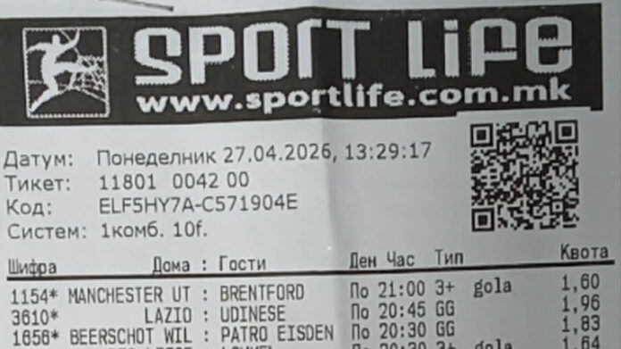 Оваа работна недела за еден обложувач кој уплатил тикет во Тетово, започна на најдобар можен начин. Во понеделникот, обложувачки махер нареди 10 фудбалски мечеви и со само 40 денари уплата, успеа да си заработи преку 3.000 евра.