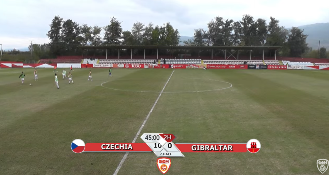 Тоа што беше специфично за мечот во Турново е дека младинците на Чешка едноставно немаа милост против врсниците од Гибралар и на полувреме водеа со неверојатни 10:0.