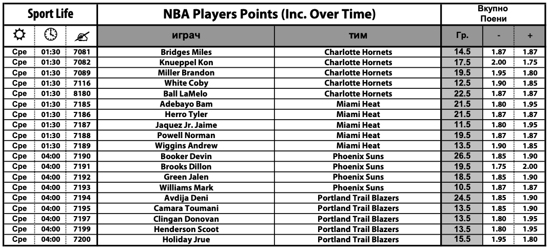 Дел од богатата понуда на Sport Life се и кошаркарите со најпопуларната игра меѓу типувачите – „плус-минус“ на поени. Комплетната понуда може да ја најдете на следниов ЛИНК.