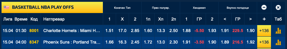 Феникс или Портланд вечерва ќе обезбедат место во плејофот, а поразената екипа ќе има уште една шанса за влез во конференциското четвртфинале. Домашните се фаворити со квота од 1.66.