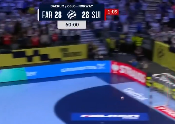 Швајцарија водеше со 28:27, а Фарски Острови го имаше последниот напад. Во нападот Фарски Острови беше со играч повеќе, без голман. На три секунди до крајот, Фарски Острови постигна гол за 28:28, а Швајцарците се обидоа веднаш да возвратат.