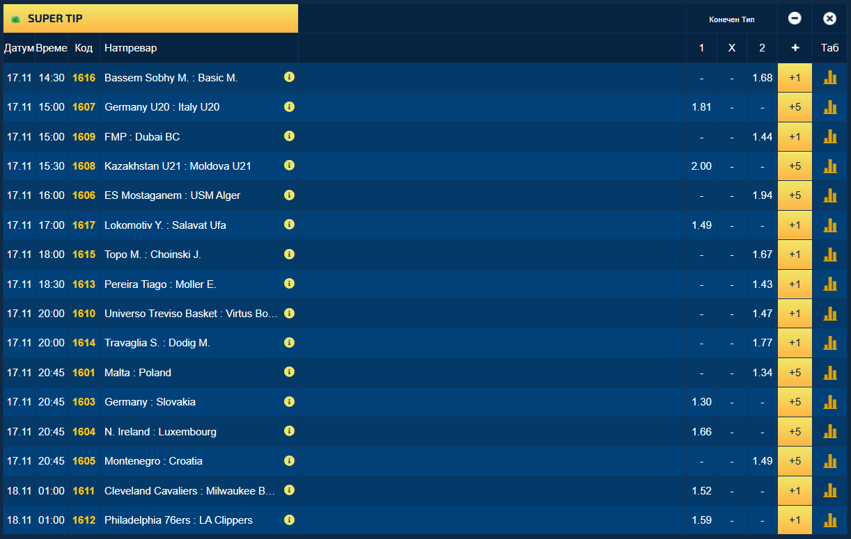 Во фудбалот, уште во главен фокус се квалификациите за пласман на СП 2026, а може да се најдат зголемени коефициенти за победи на Полска, Германија, Северна Ирска и Хрватска.